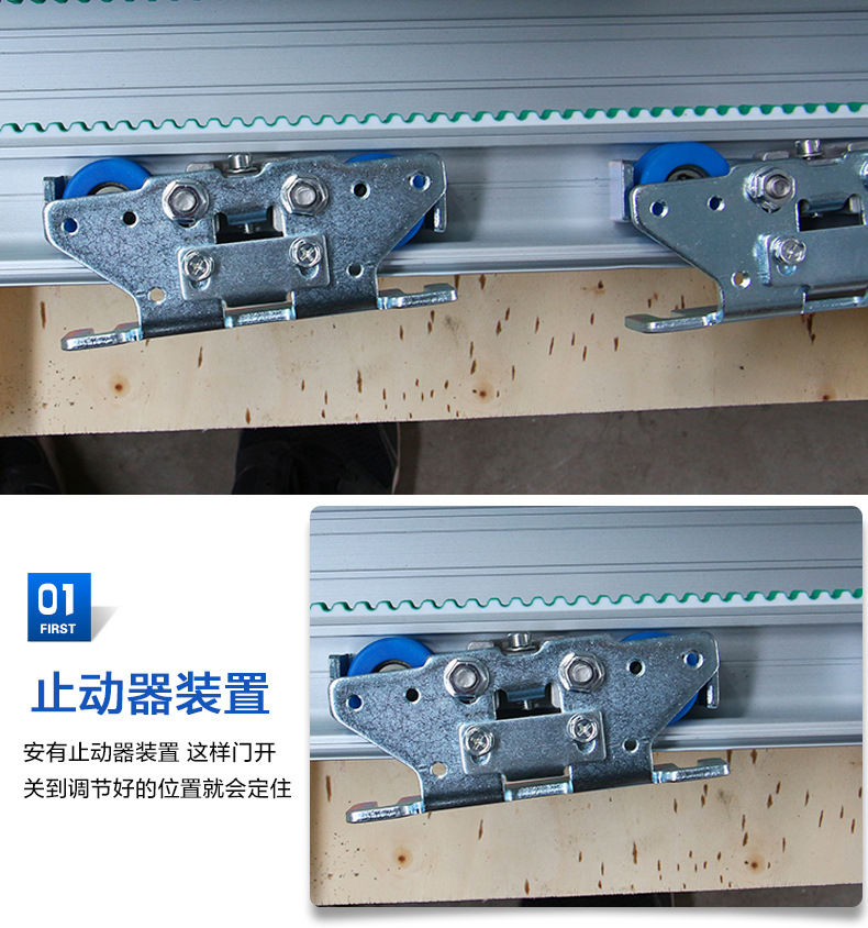 4:采用高強(qiáng)度聚氨酯滑輪,滾動(dòng)摩擦噪音更低;